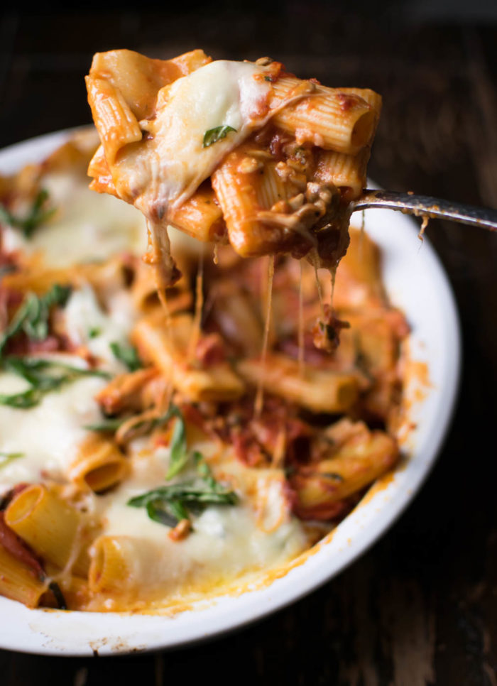 I'm having a hard time writing this post right now because I already polished off the last of my most recent batch of this baked pasta and looking at these photos is making me want to make some more right now!